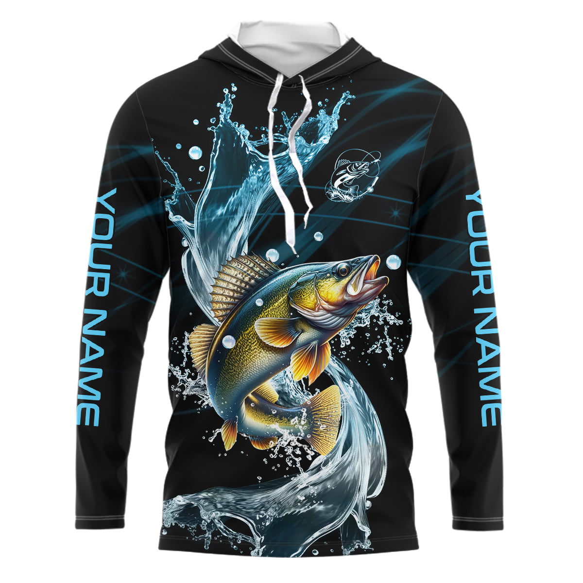 Walleye fishing blue water Custom performance long sleeve fishing shirts, Walleye fishing jerseys NQS9093