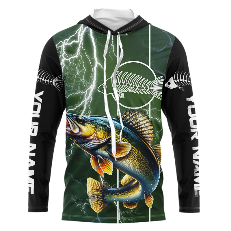 Walleye Fishing Custom Long sleeve Fishing Shirts, Walleye green lightning reaper Fishing jerseys NQS4016