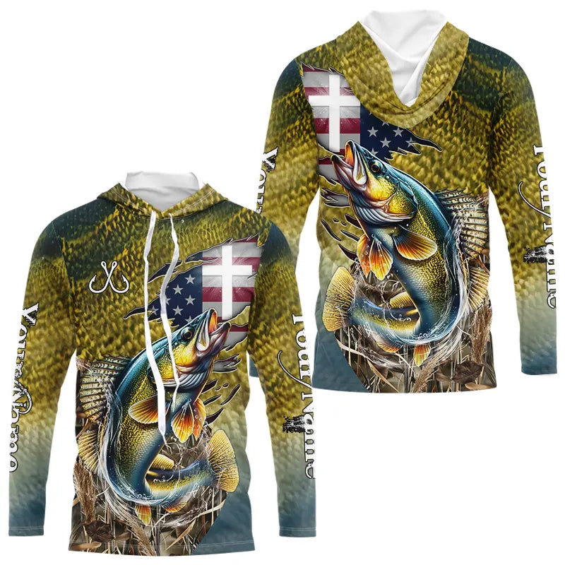 Walleye Fishing Scales Camo American Flag Faith patriotic Custom UV protection long sleeves shirts NQS9310