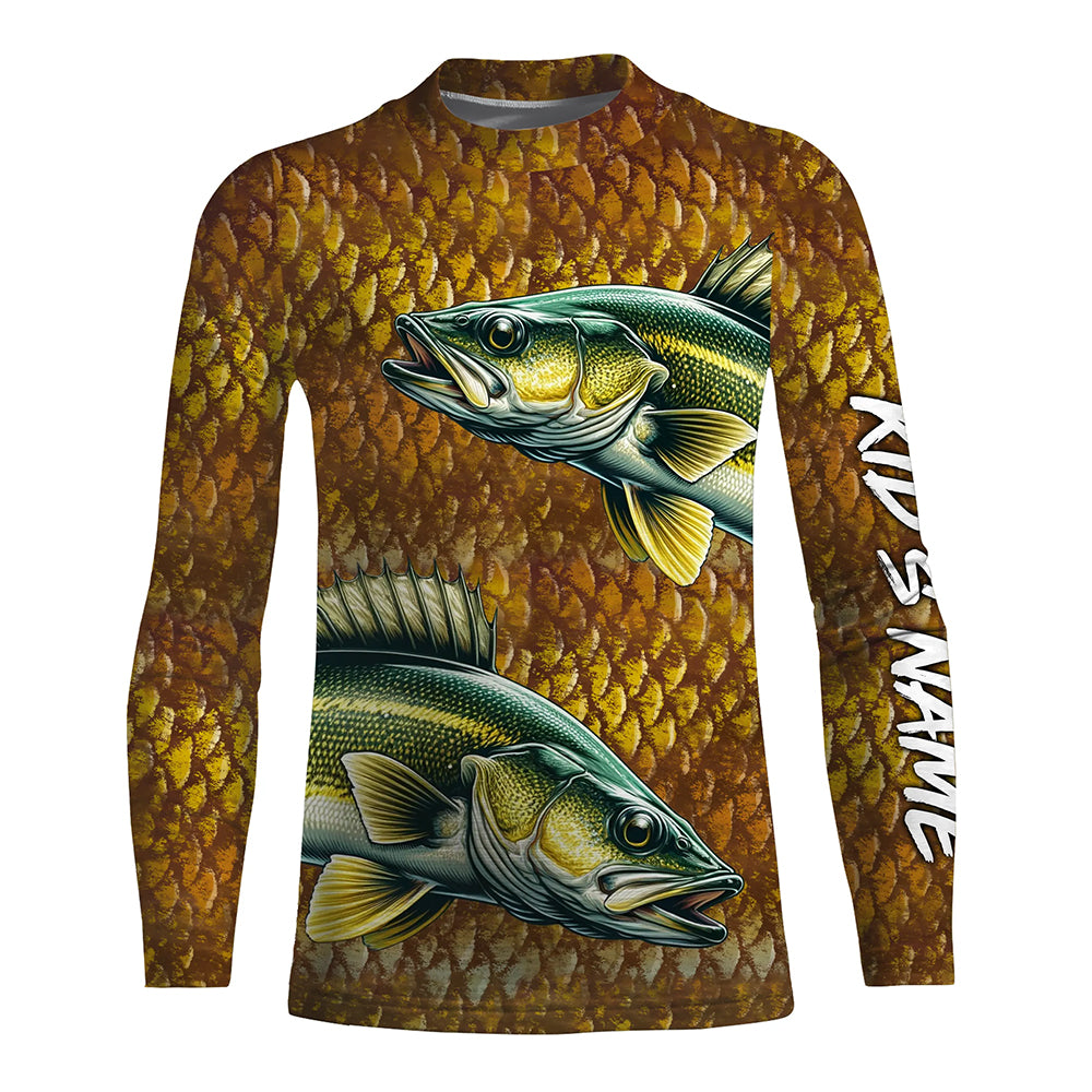 Walleye fishing scales Custom long sleeve Fishing Shirts, personalized freshwater fishing jerseys NQS6800