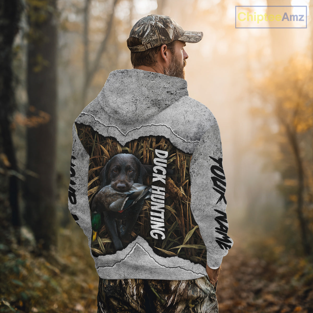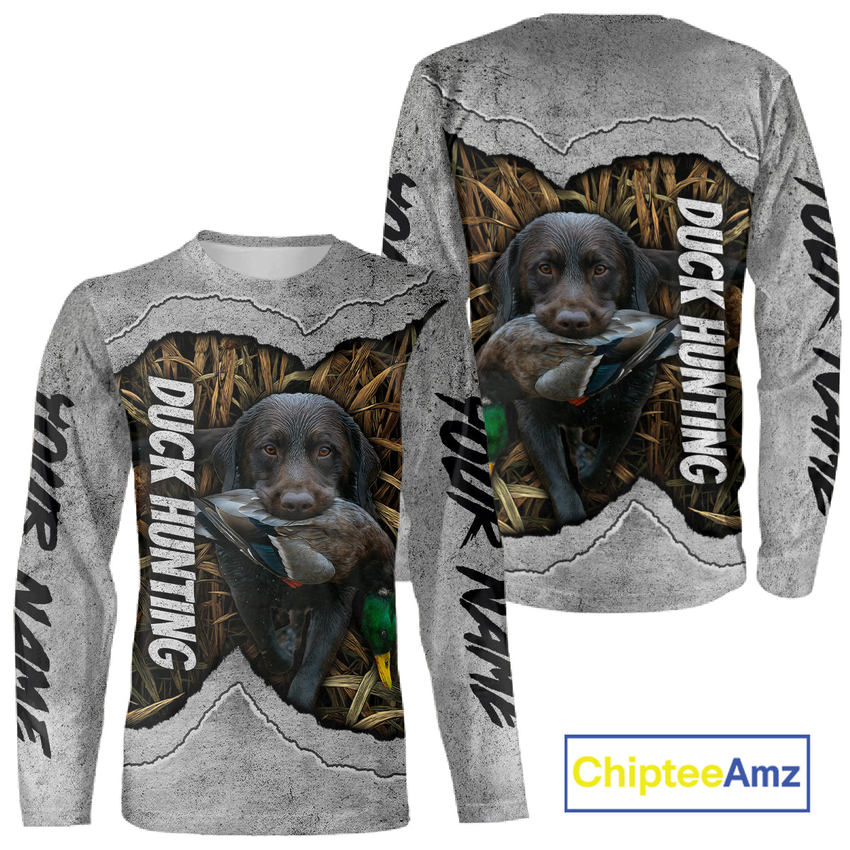 Waterfowl Duck Hunting Shirt – Gray Camo Personalized with Black Lab, Hunting Clothes NHT174