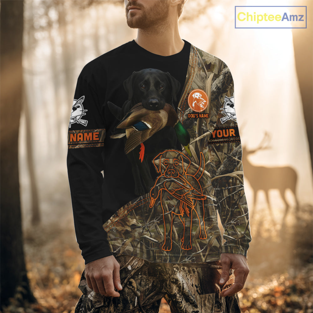 Black Lab Hunting Dog Customized Name All Over Print Shirts For Hunters, Duck Hunting Shirt NHT271