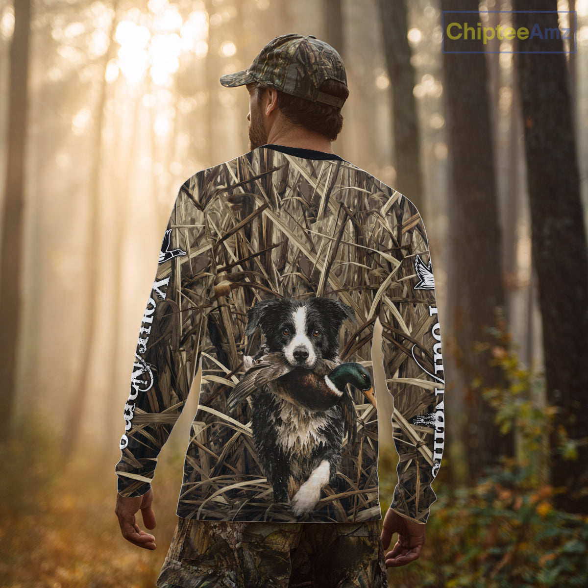 Custom Border Collies Duck Hunting Camo 3D Printed Shirts, Duck Hunting Apparel, Hunting Gifts NBT191