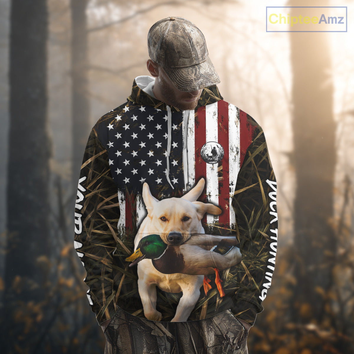 Mallard Duck Hunting Shirt Personalized Camo With Dog Yellow Lab US Flag Hunting Clothes NHT166