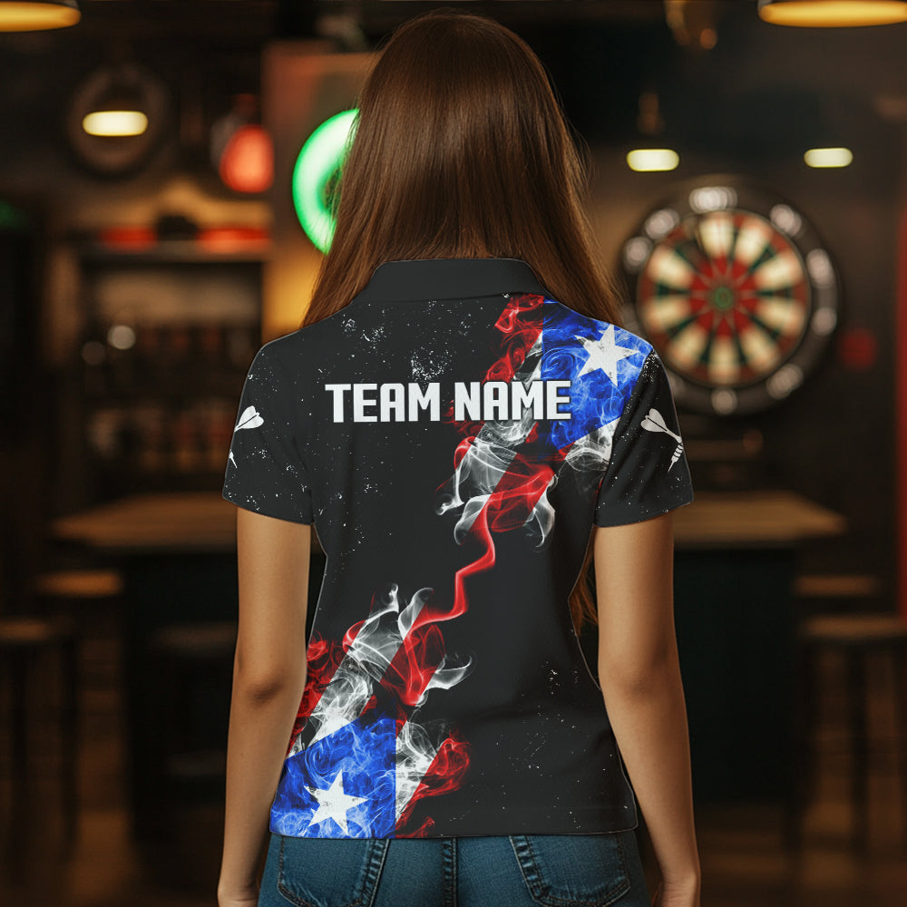 Customized Grunge Puerto Rico Flag Smoke Darts Polo & 1/4 Zip, Patriotic Darts Jerseys For Women TDM2497