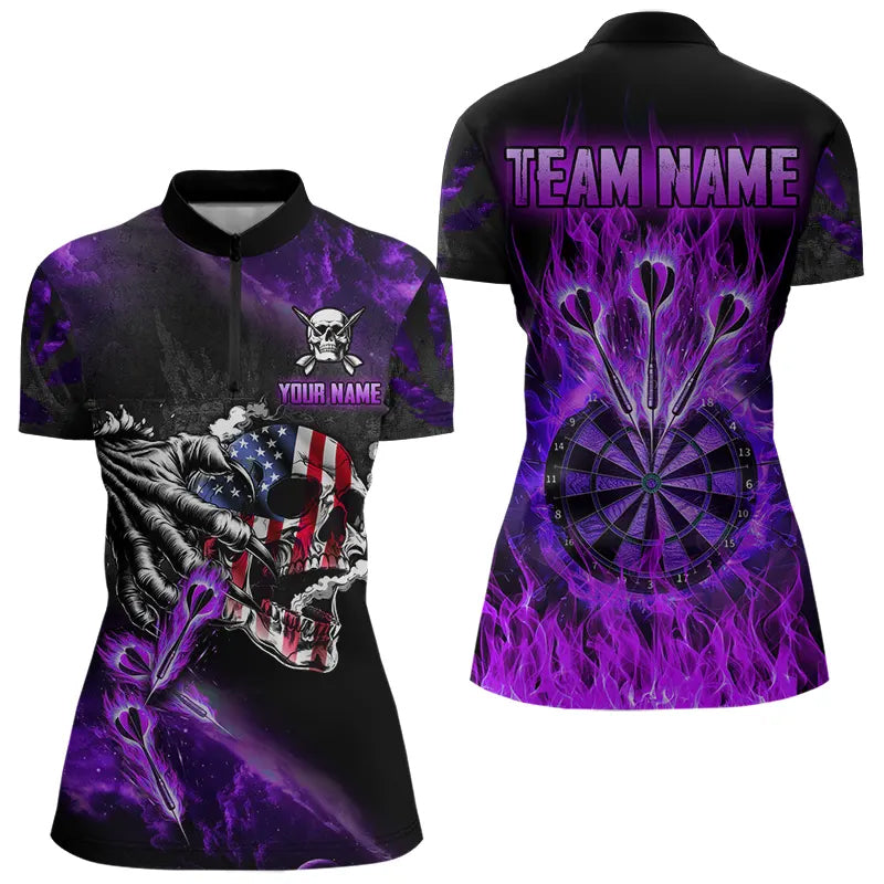 Fire Flame Darts Board American Flag Skull Dart Shirts For Women Custom Darts Team Jerseys |Purple TDM2982