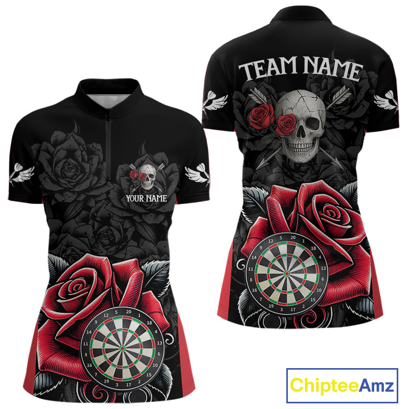 Black And Red Dartboard Roses And Skull Darts Shirt For Women Custom Darts Jersey Outfit, Dart Gift TDM4433