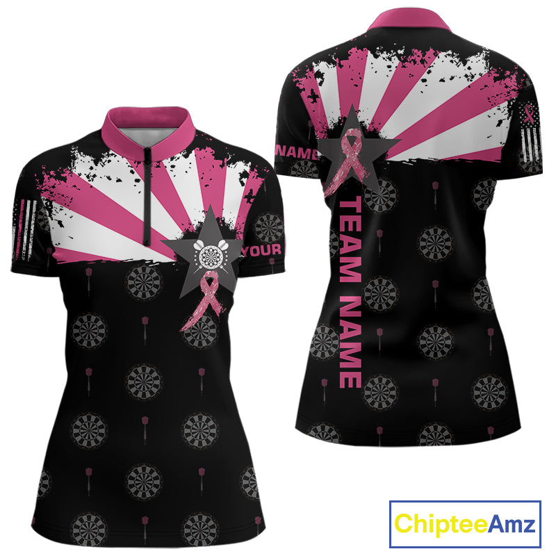 Personalized Pink Ribbon Darts Shirt For Women Custom Breast Cancer Awareness Darts Team Jersey TDM4492