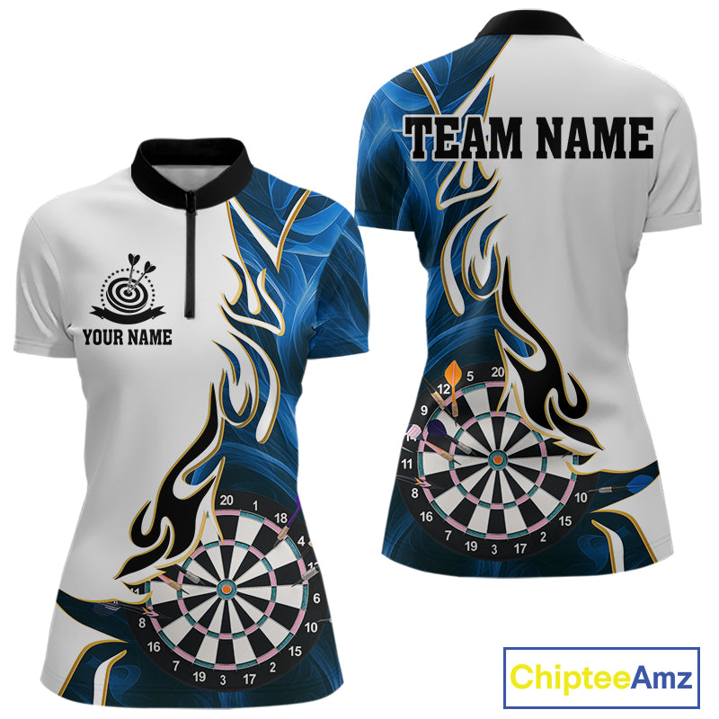 Personalized Blue Flaming Darts Jersey For Women Custom Darts Team Shirts Polo & Quarter Zip TDM4512