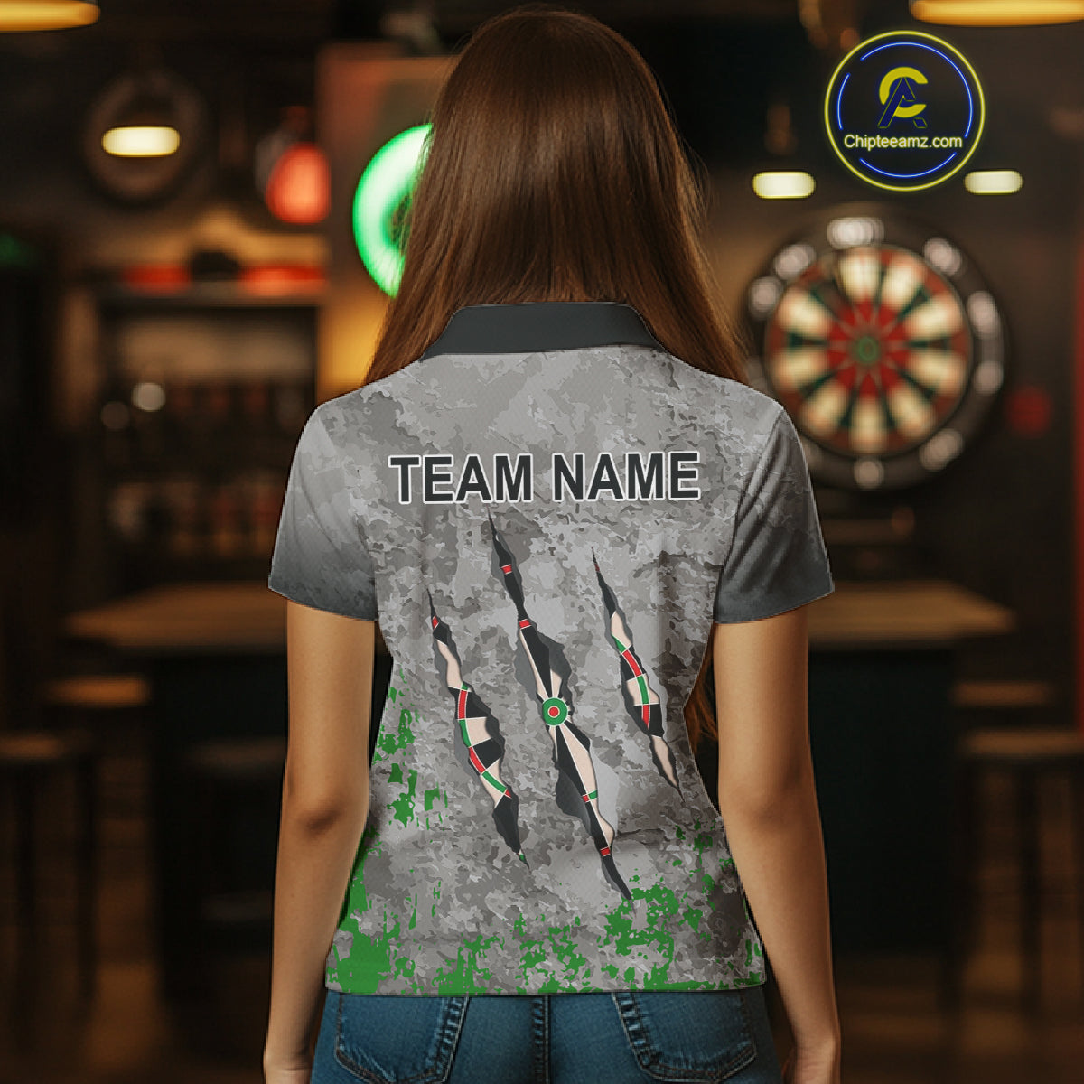 Custom Green Grey Grunge Dart Shirt With Pocket Option For Women, Darts Jersey TDM4528