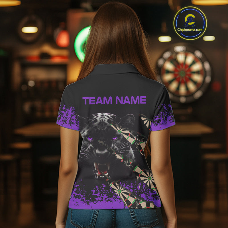 Black And Purple Grunge Panther Darts Shirt Polo & Quarter Zip For Women Custom Darts Team Jersey TDM4583