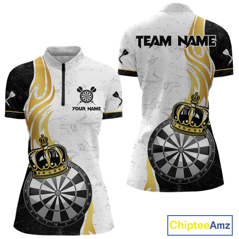 Personalized Dartboard Crown Gold Darts Shirt For Women Custom Darts Team Jersey Polo & 1/4 Zip TDM4653