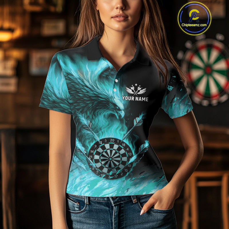 Turquoise Flaming Phoenix Darts Jerseys Custom Darts Shirt For Women, Darts Team Polo & Quarter Zip TDM4662