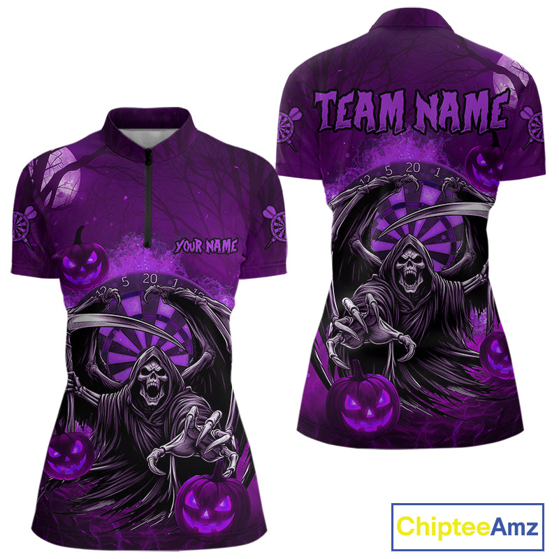 Funny Purple Grim Reaper Halloween Darts Shirt For Women Custom Darts Jersey Team Polo & Quarter Zip TDM4667