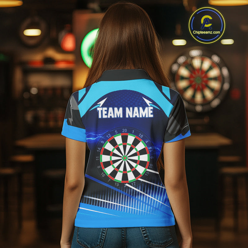 Personalized Blue Thunder Lightning Darts Jersey For Women Custom Darts Team Shirt Polo & 1/4 Zip TDM4721