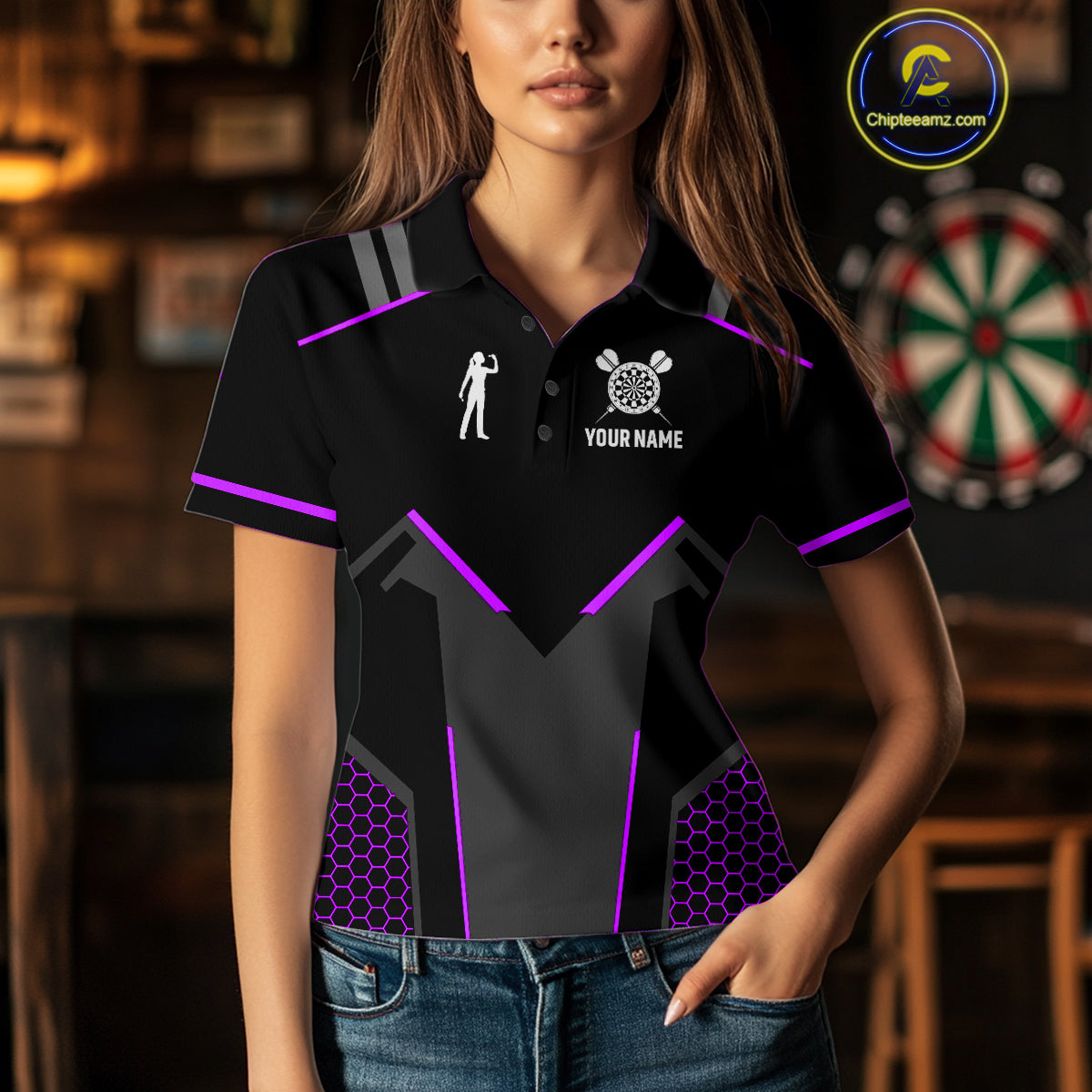 Darts Jersey For Women Custom Polo & Quarter Zip Darts Tournament Team Shirt  |Purple TDM4748