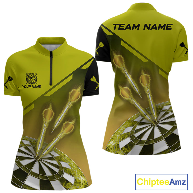 Personalized Yellow Dart Jerseys Polo & Quarter Zip Shirt For Women Custom Dart Shirts Team Uniform TDM4753