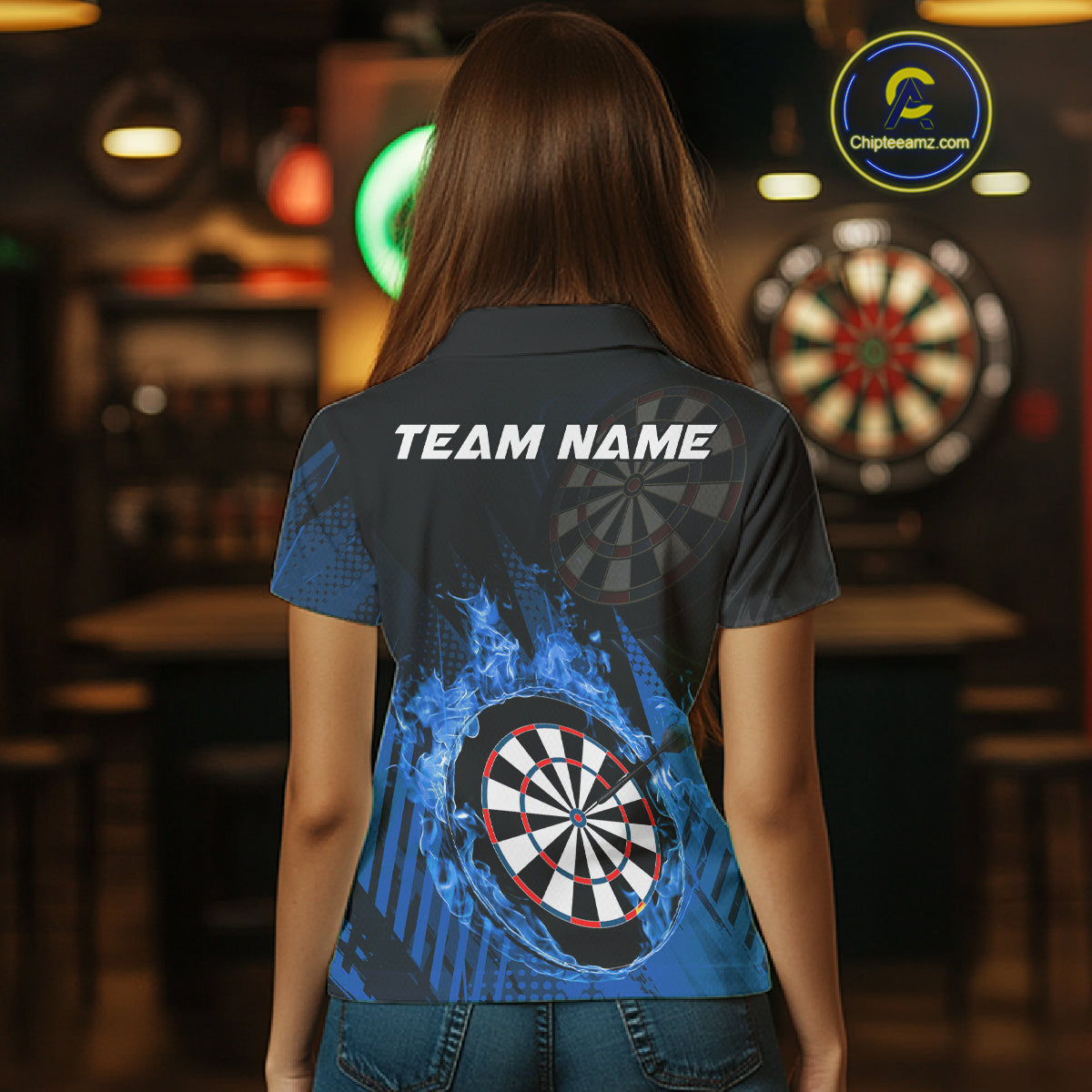 Blue Dartboard Fire Flame Darts Shirt For Women Custom Darts Jersey, Dart Team Shirt Polo & 1/4 Zip TDM4800