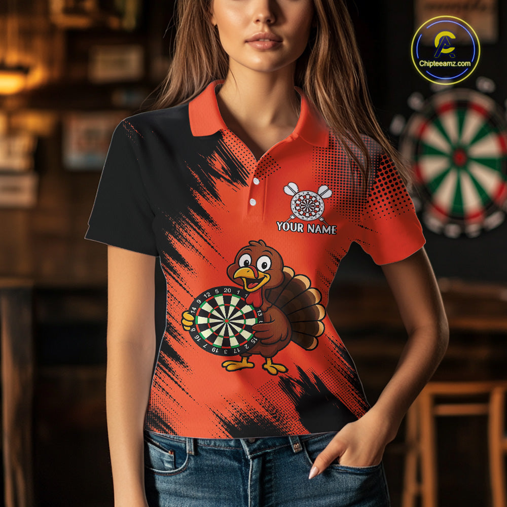 Custom Orange Funny Turkey Darts Shirt For Women, Thanksgiving Darts Team Jersey Polo & 1/4 Zip TDM4803