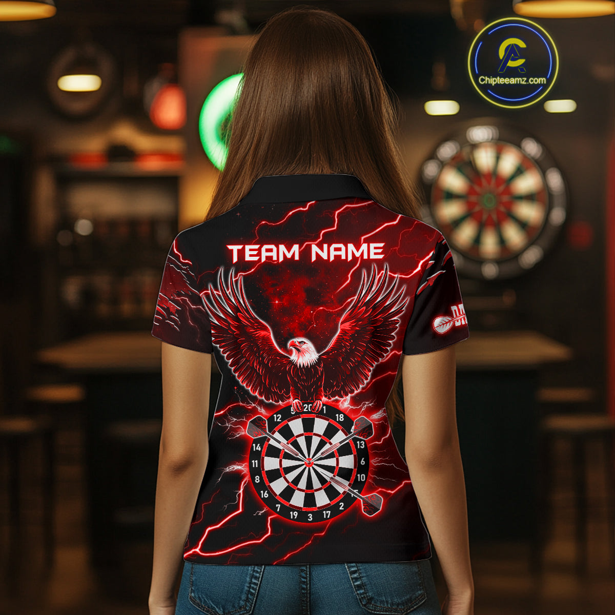 Personalized Thunder Lightning Eagle Red Darts Shirt Polo & Quarter Zip For Women Dart Team Jersey TDM4835