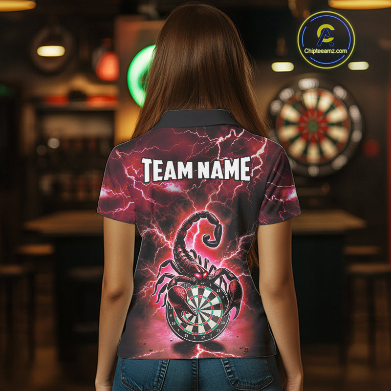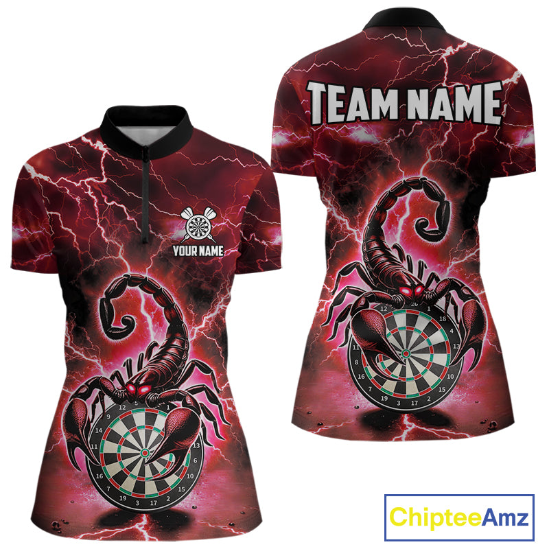 Red Lightning Thunder Scorpion Darts Shirt Polo & 1/4 Zip For Women Custom Darts League Team Jersey TDM4866