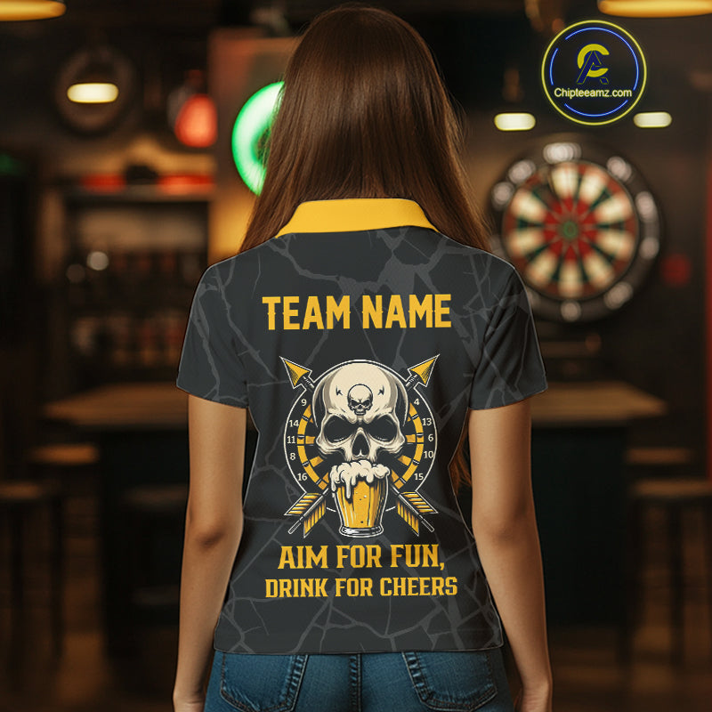 Funny Darts And Beer Aim For Fun Drink For Cheer Custom Skull Dart Shirt For Women, Dart Team Jersey TDM4878