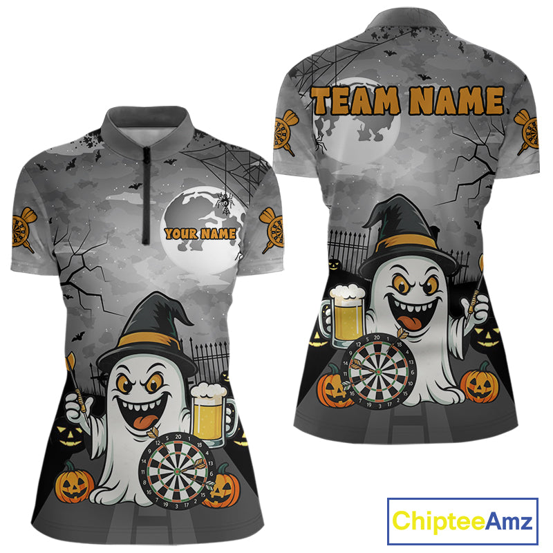 Funny Ghostly Beer Halloween Darts Shirt For Women Custom Halloween Gifts For Darts Lover TDM4948