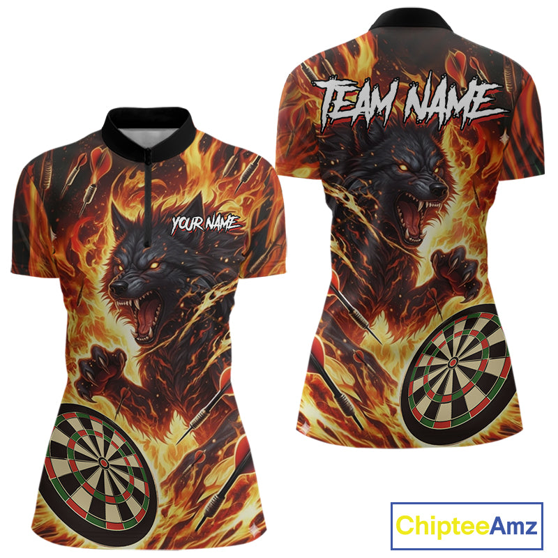 Orange Flaming Wolf Dartboard Jersey For Women Custom Darts League Team Shirt Polo & Quarter Zip TDM5022
