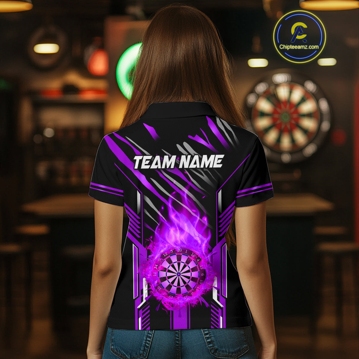 3D Darts Board Fire Flame Custom Dart Shirts For Women, Dart League Jerseys Team Uniform |Purple TDM5052