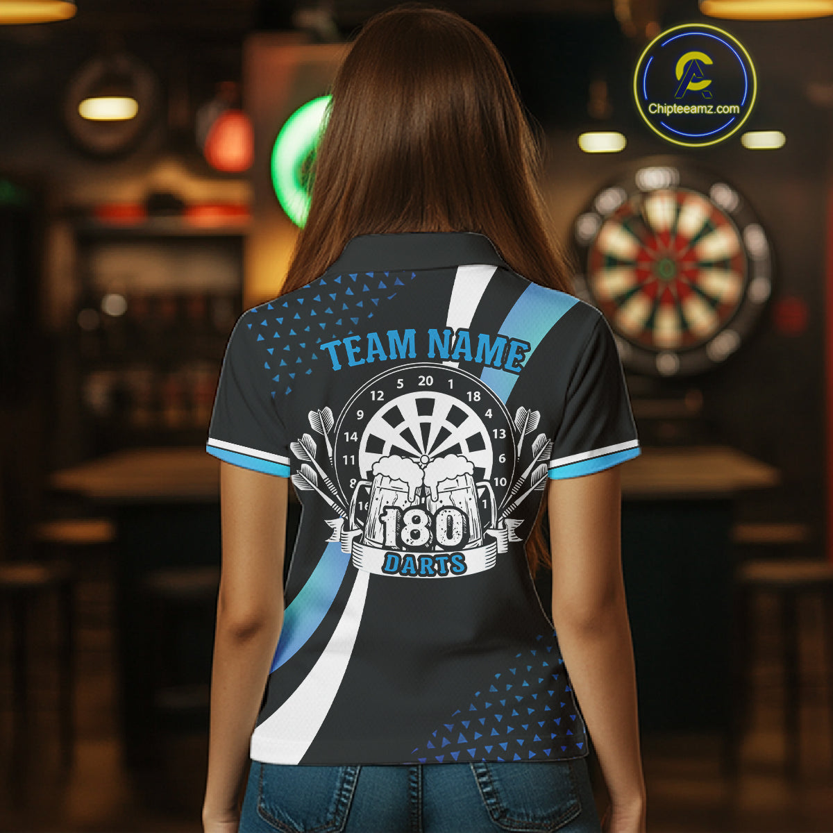 Funny Black And Blue 180 Darts Shirt For Women Custom Dartboard Jersey Team Polo & Quarter Zip TDM5088