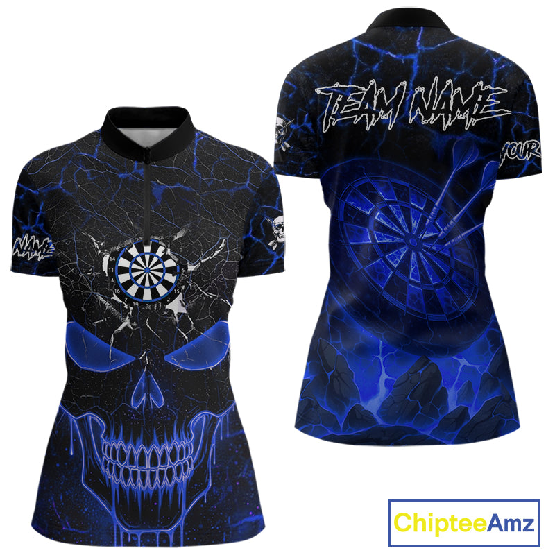 Personalized Skull Cracks Pattern Blue Darts Shirt For Women, Darts League Jersey Polo & 1/4 Zip TDM5105