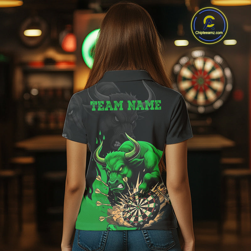 Black And Green Funny Bull Darts Shirt For Women Custom Dart Jersey Team Polo & 1/4 Zip TDM5123