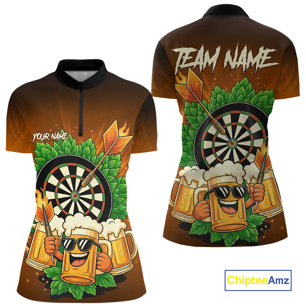 Funny Beer And Dartboard Womens Dart Shirts Custom Dart Jerseys Drinking Team Shirt Polo & 1/4 Zip TDM5183