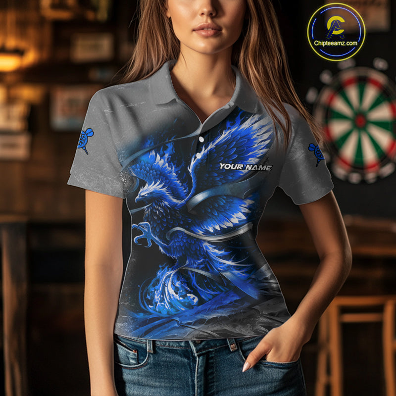 Personalized Phoenix Flame Darts Shirt For Women Custom Darts Team Jersey Polo & 1/4 Zip |Blue TDM5247
