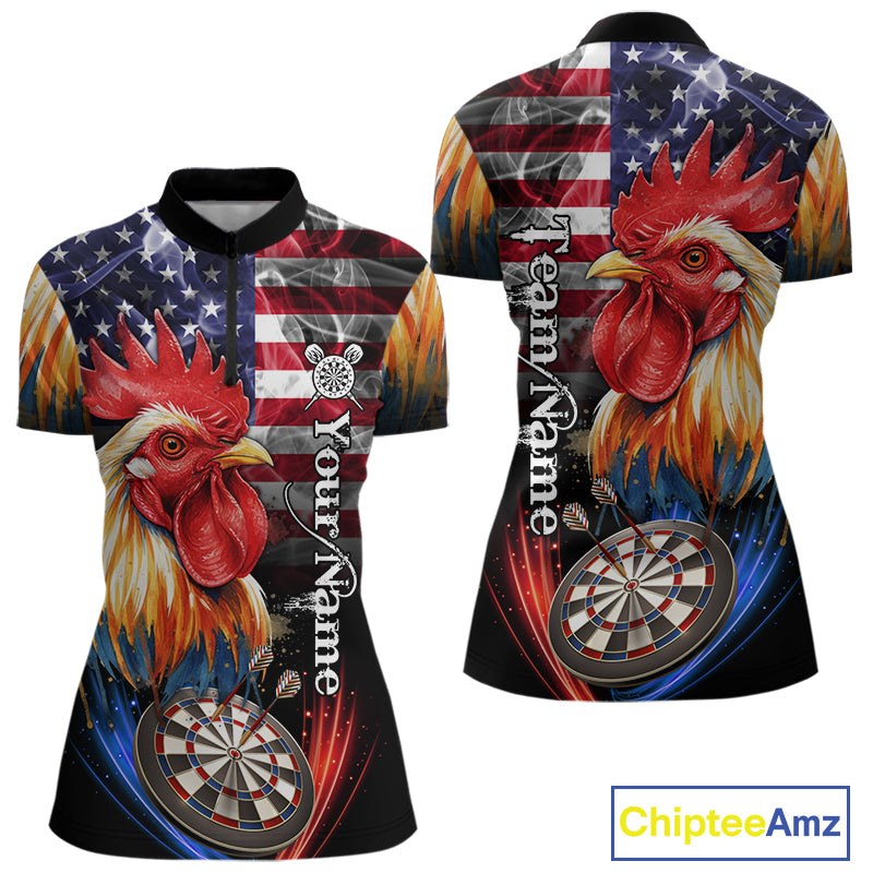 American Flag Smoke Rooster Darts Shirt For Women Custom Patriotic Darts Jersey Team Polo, 1/4 Zip TDM5257