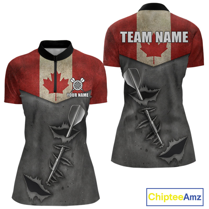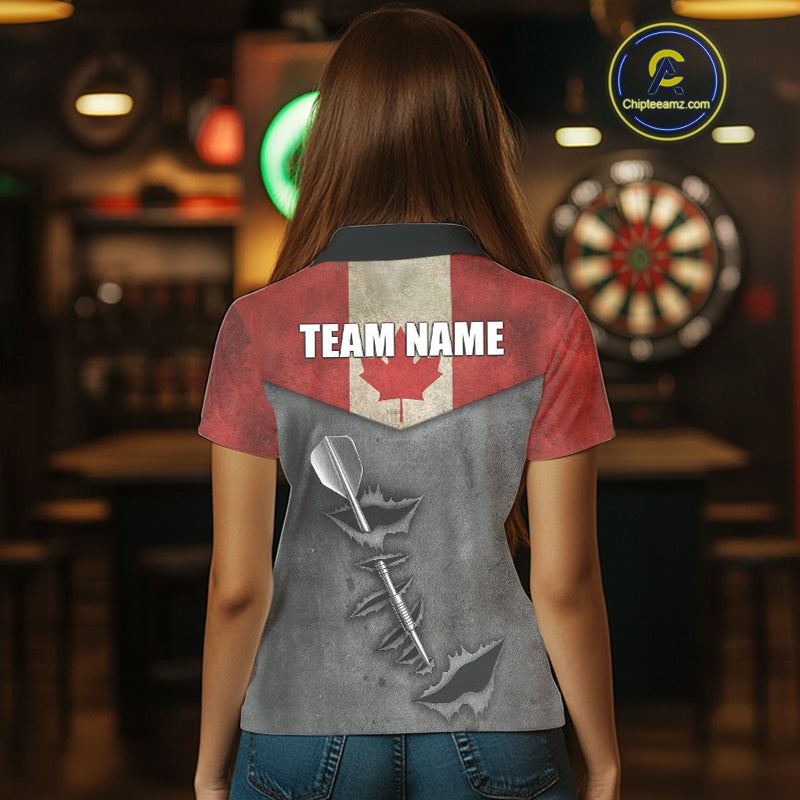 Personalized Canada Flag Steel Tip Dart Polo & 1/4 Zip For Women Custom Canada Darts Team Jersey TDM5261