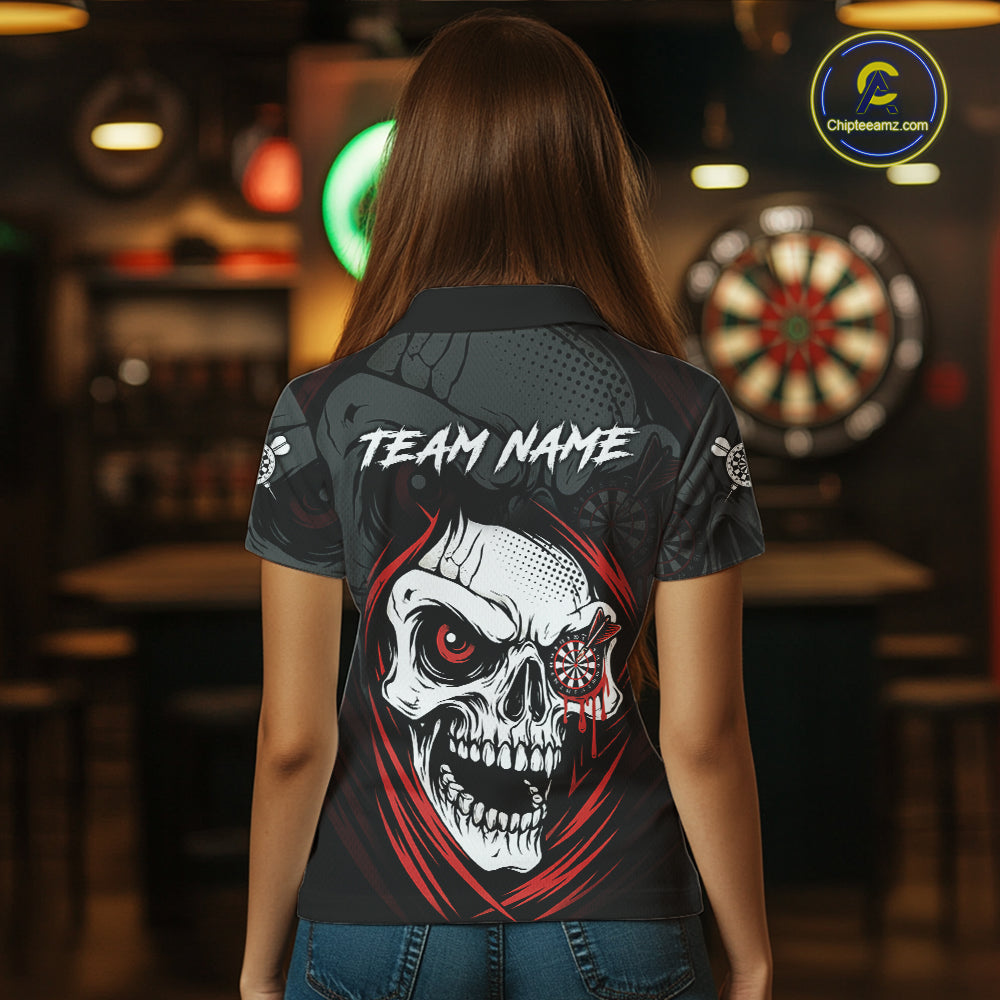 Personalized Funny Skull Darts Shirts For Women Custom Darts Jersey Team Polo & Quarter Zip | Red TDM5295