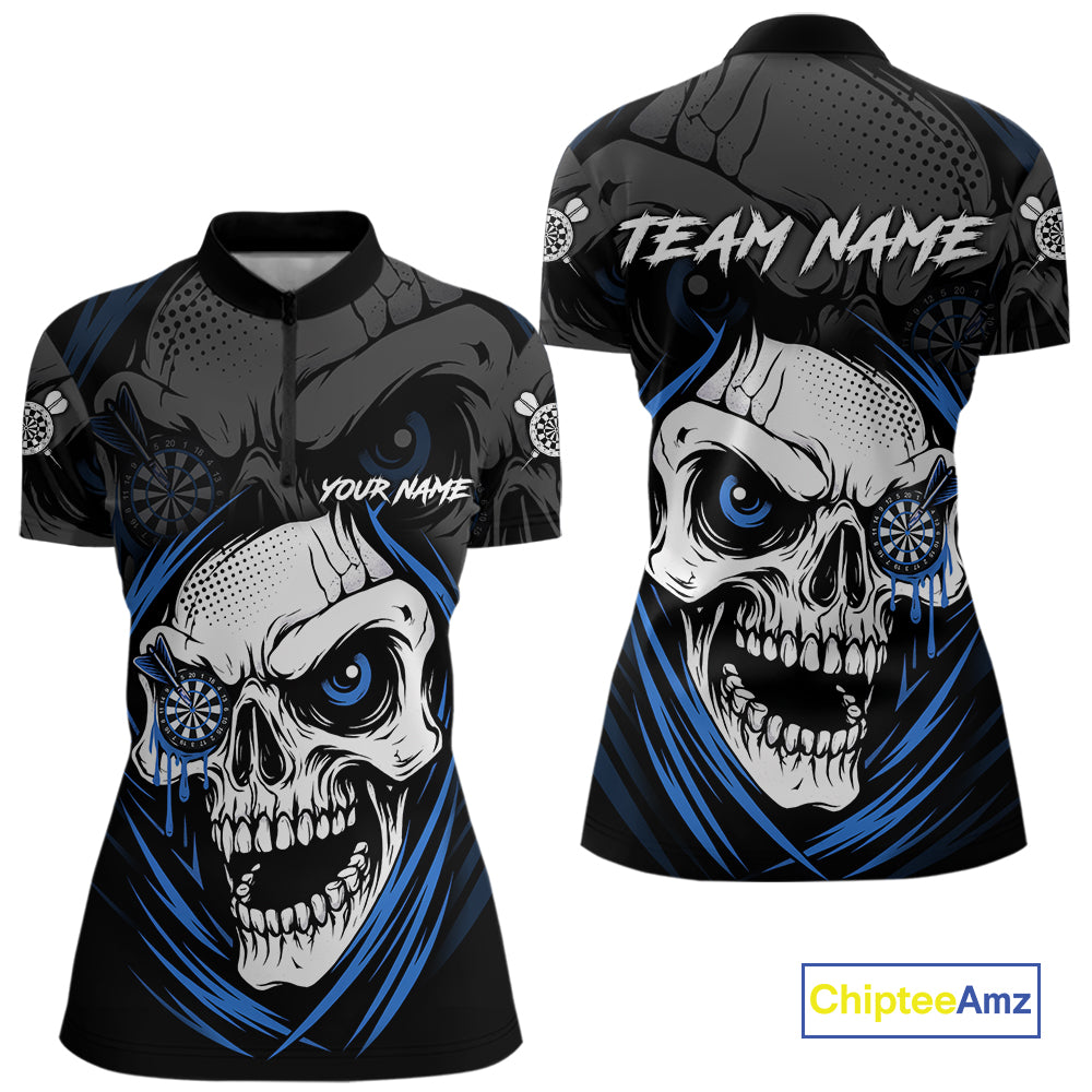 Personalized Funny Skull Darts Shirts For Women Custom Darts Jersey Team Polo & Quarter Zip |Blue TDM5296
