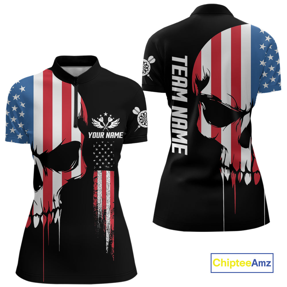 American Flag Skull Darts Shirt For Women Custom Patriotic Darts Jersey Team Polo & 1/4 Zip TDM5299