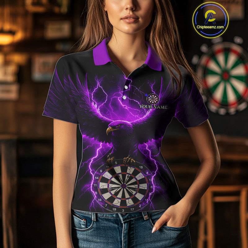 Purple Hawkeye Thunder Lightning Darts Shirt For Women Custom Darts Jersey Team Polo & 1/4 Zip TDM5303
