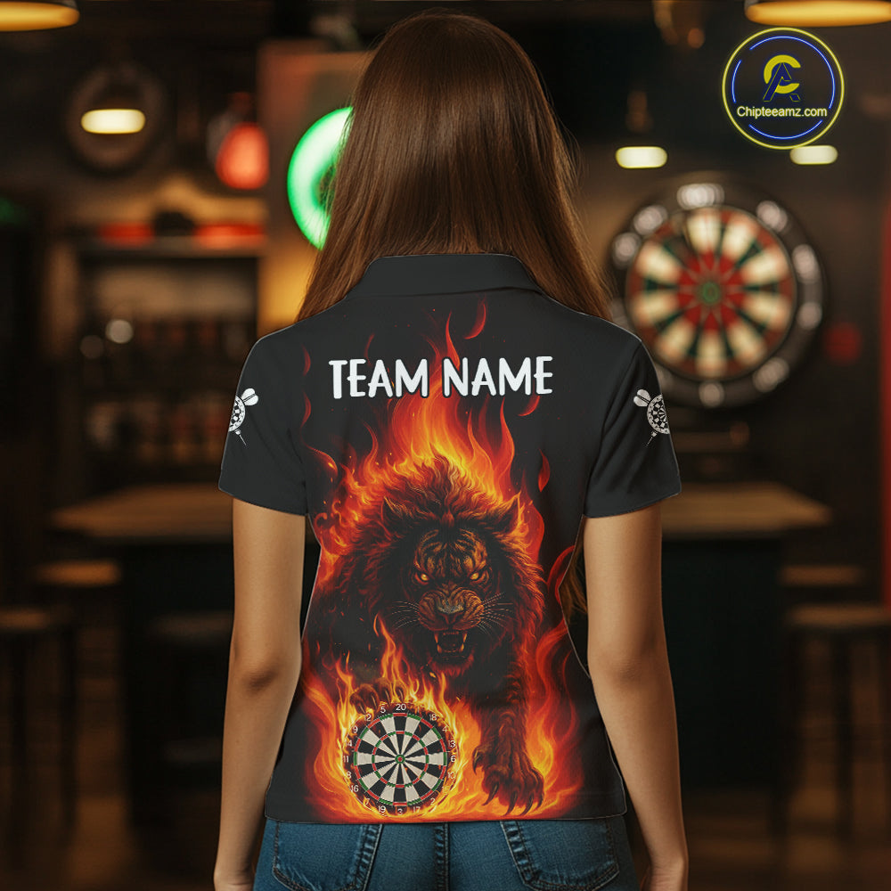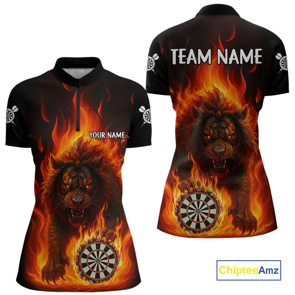 Orange Flaming Lion Darts Shirts For Women Custom Fire Darts League Jersey Team Polo & 1/4 Zip TDM5308