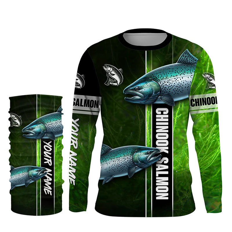 Chinook salmon fishing green camo Custom Long Sleeve Fishing Shirts, fishing gifts for men, women, kid NQS5809