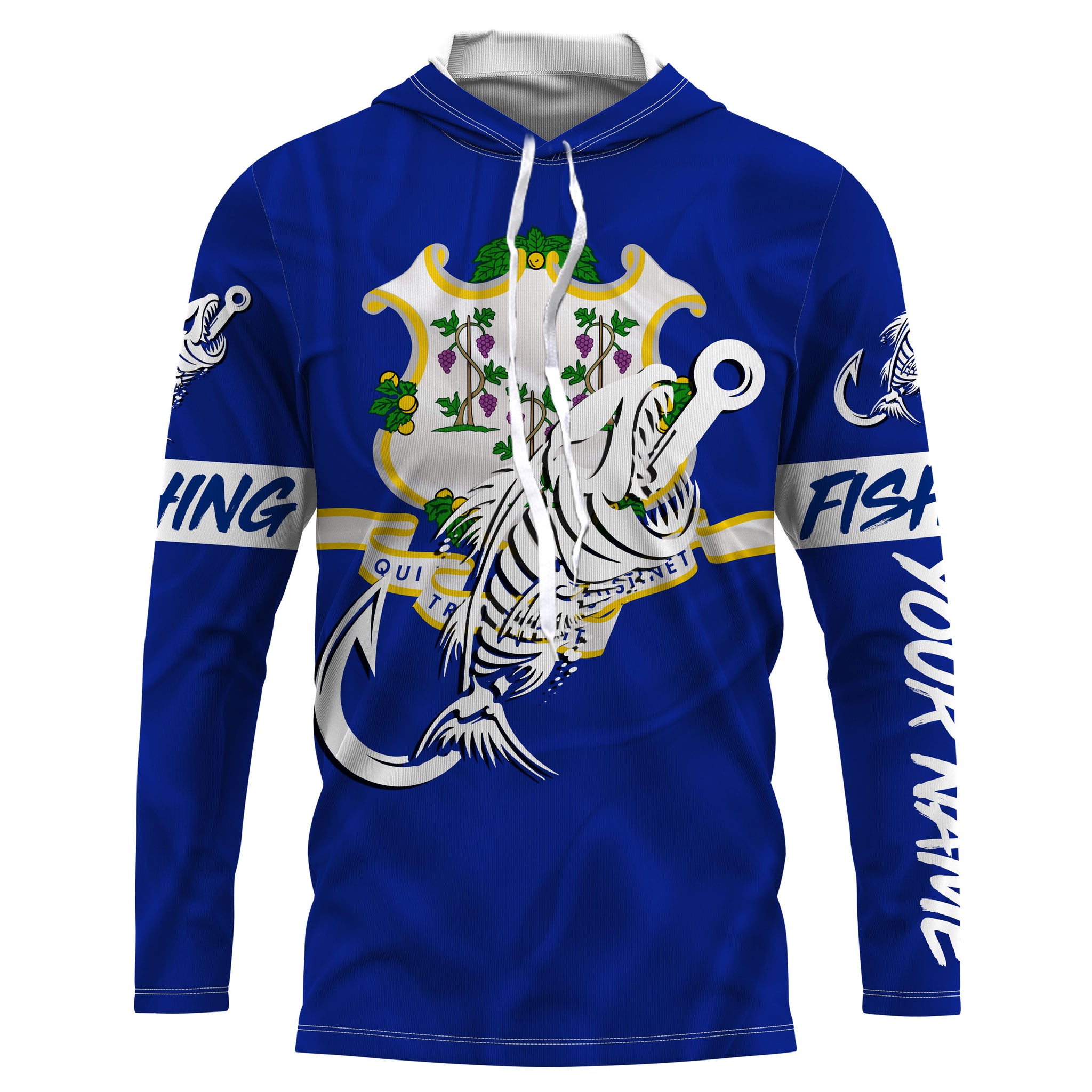 CT Fishing Custom Connecticut Flag Fish hook skull Custom sun protection fishing shirts for men, women NQS3391