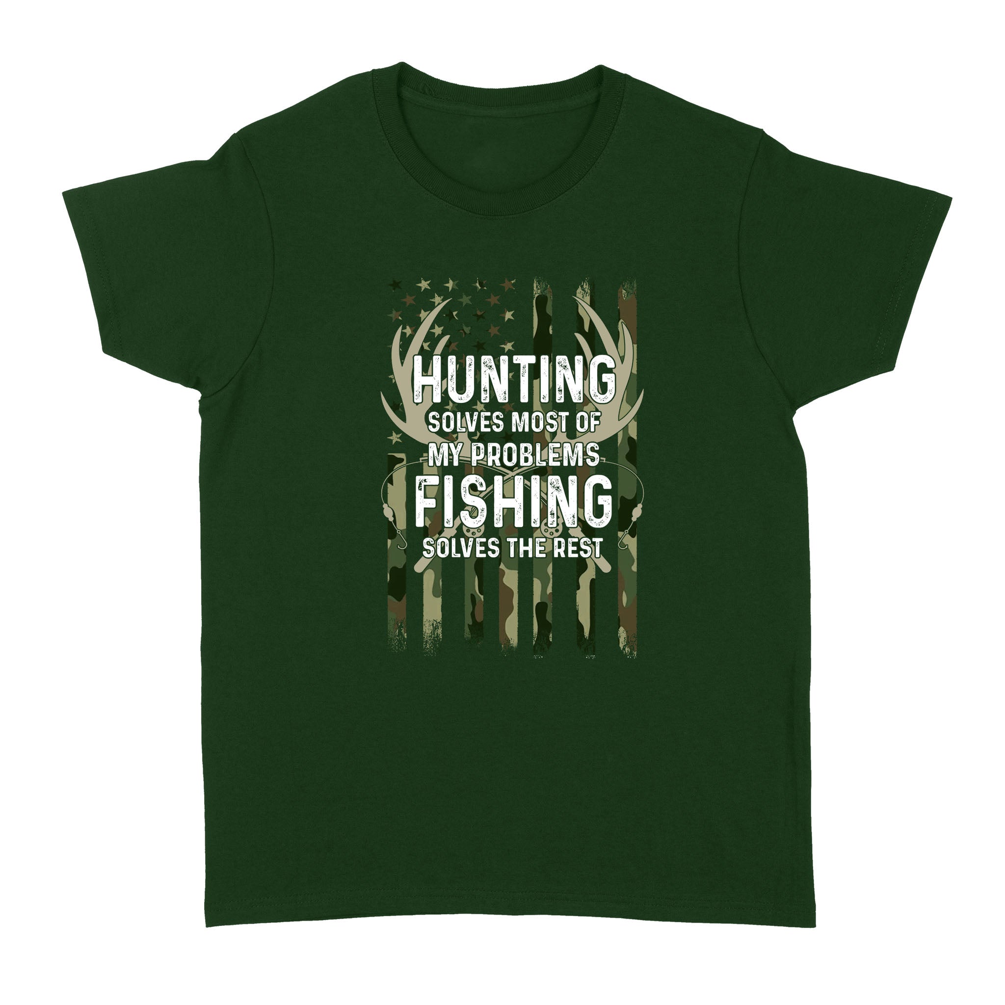 Hunting solves most of my problems, fishing solves the rest camo American flag D01 NQS3034 Women's T-shirt