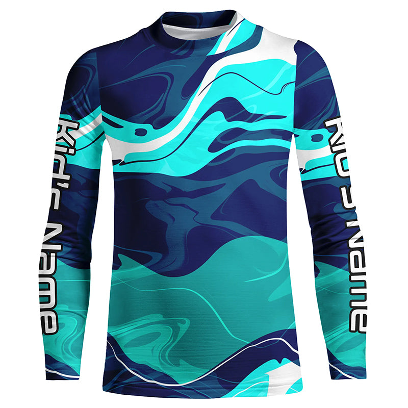 Blue And Green Water Camo Custom Long Sleeve Performance Fishing Shirts For Men, Women And Kids IPHW5870