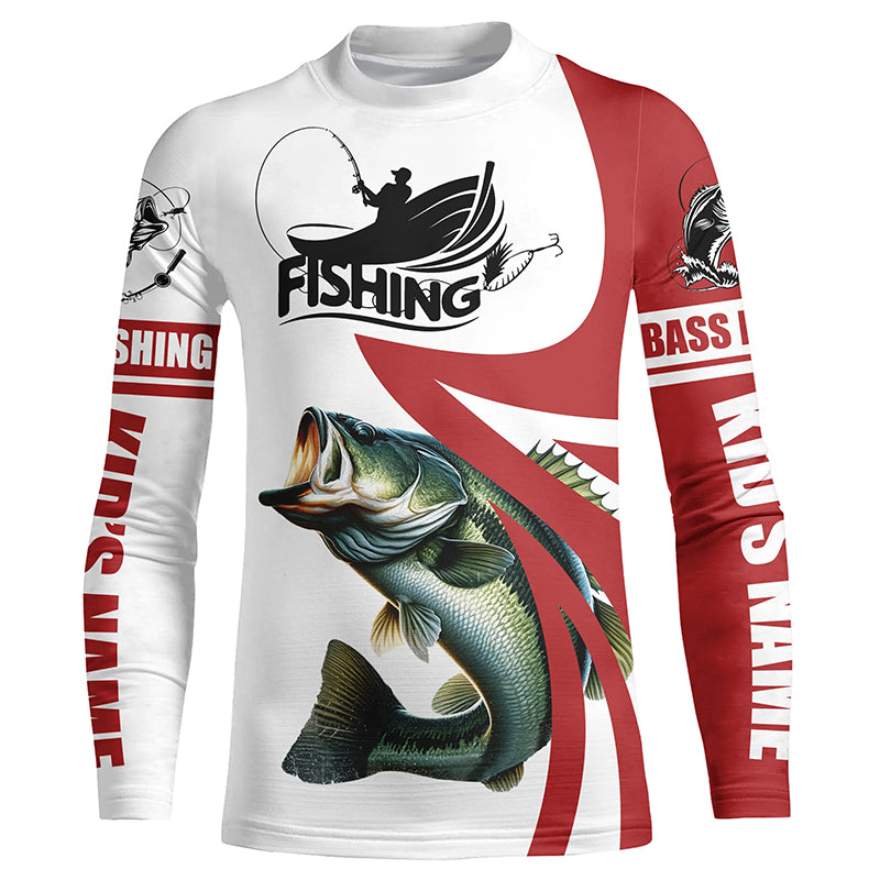 Largemouth bass fishing Custom Name sun protection long sleeve fishing shirts for men, women | Red NQS4817