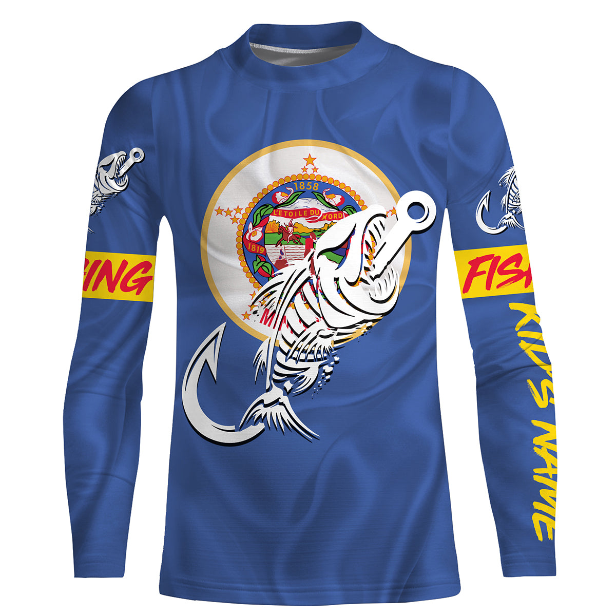 MN Fishing Custom Minnesota Flag Fish hook skull Custom sun protection fishing shirts for men, women NQS3350