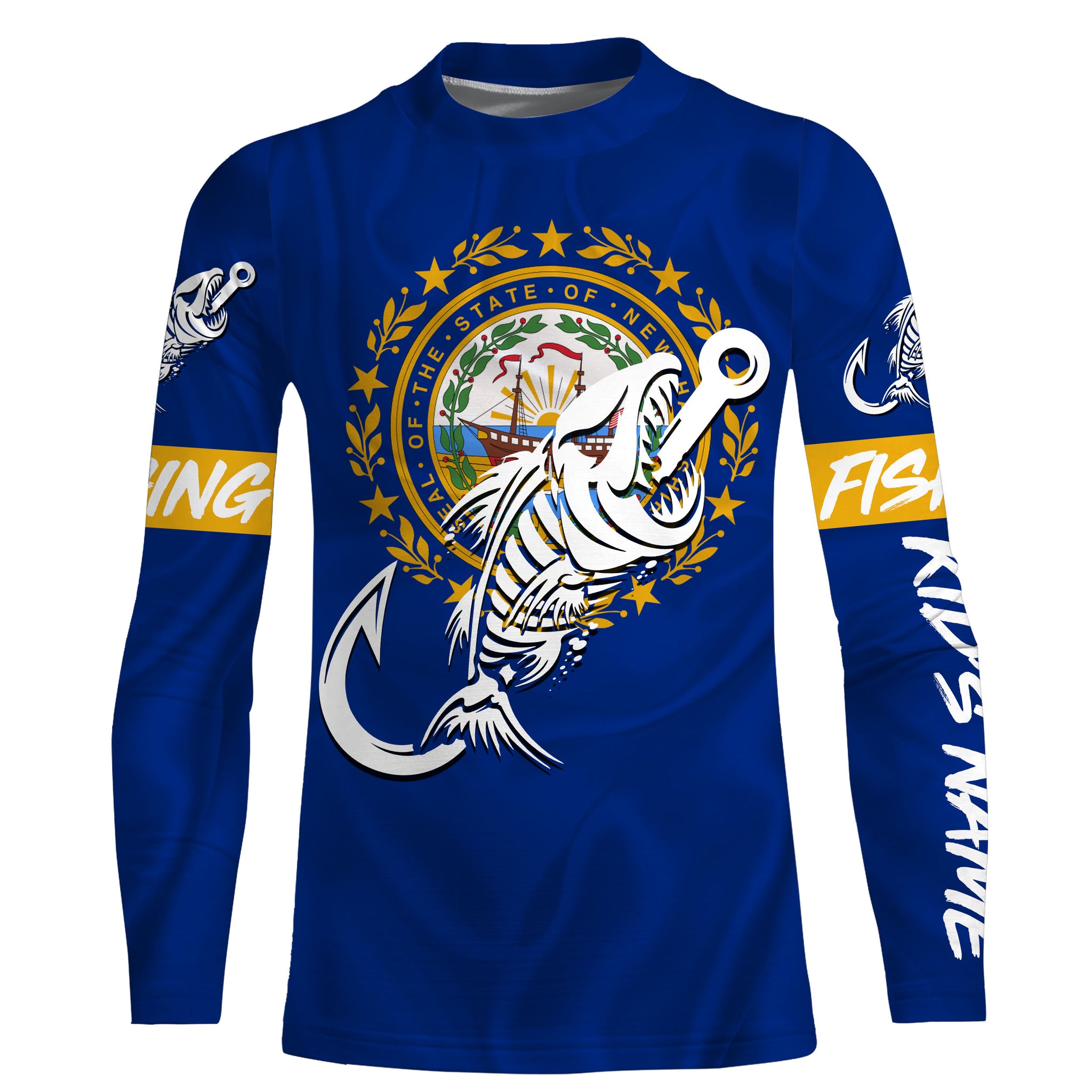 NH New Hampshire Fishing Flag Fish hook skull Custom sun protection fishing shirts for men, women, kid NQS3400