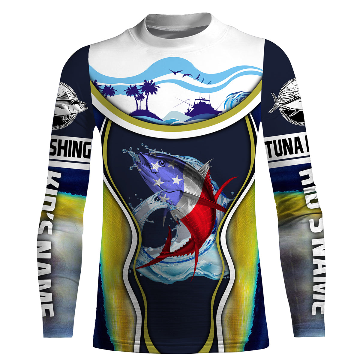 Tuna fishing American flag patriotic Custom Name fishing shirts for men, women, kid, fishing apparel NQS3285