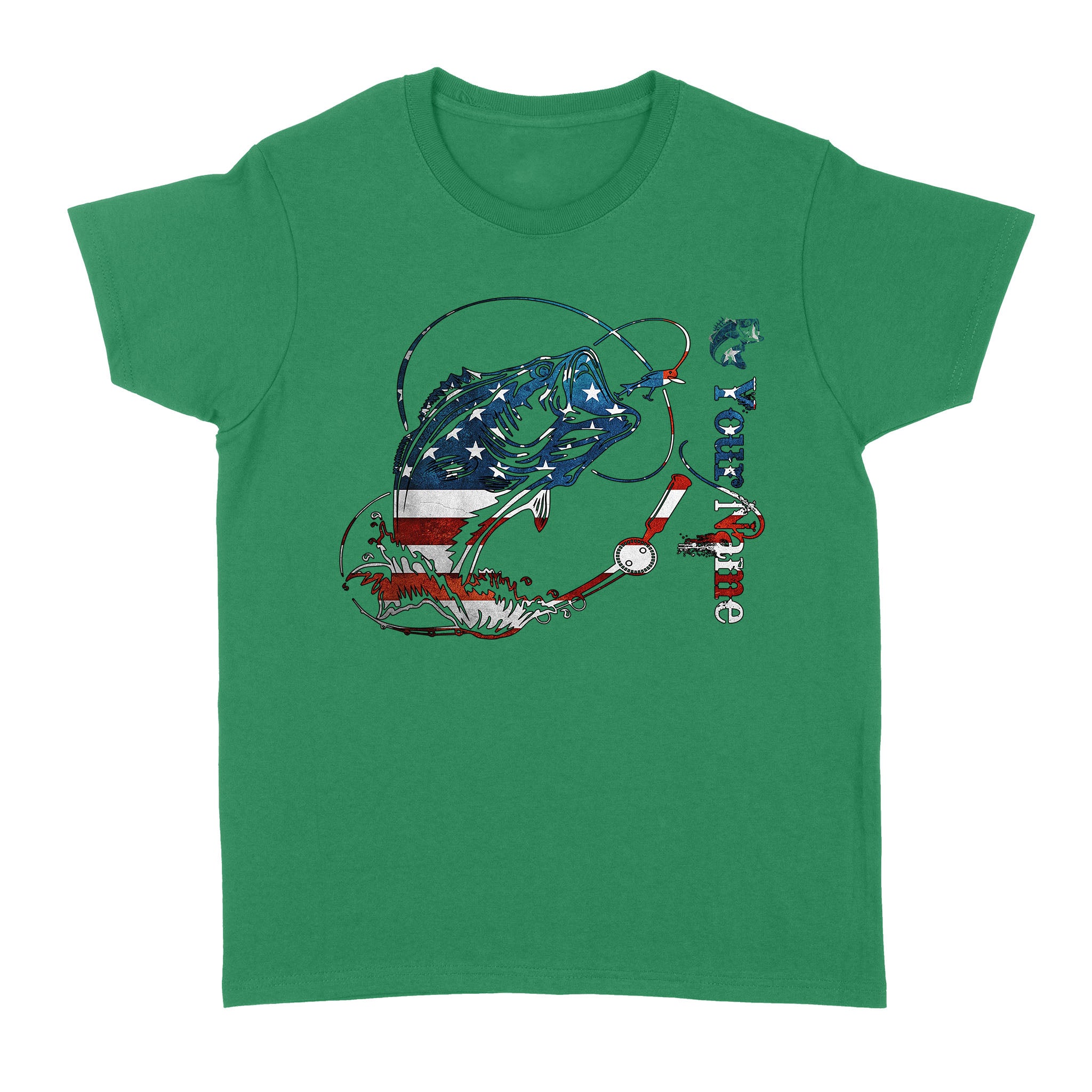 US Bass Fishing American Flag Custom name Women's T-shirt D02 NQS1248